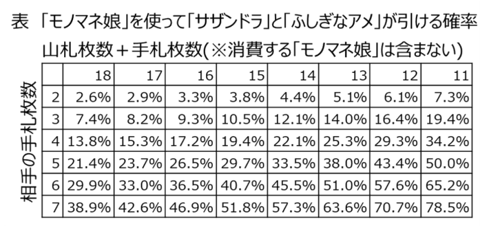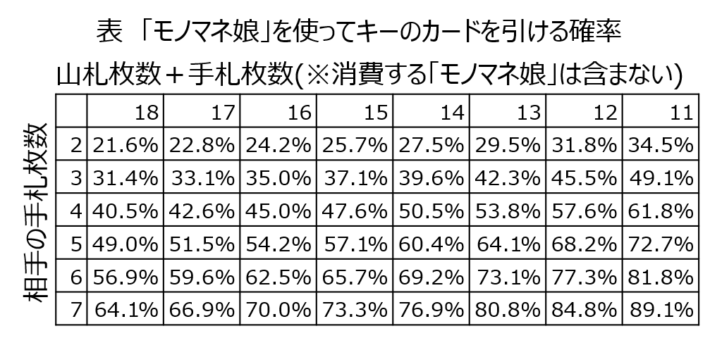 「モノマネ娘」を使ってキーのカードを引いてくる確率